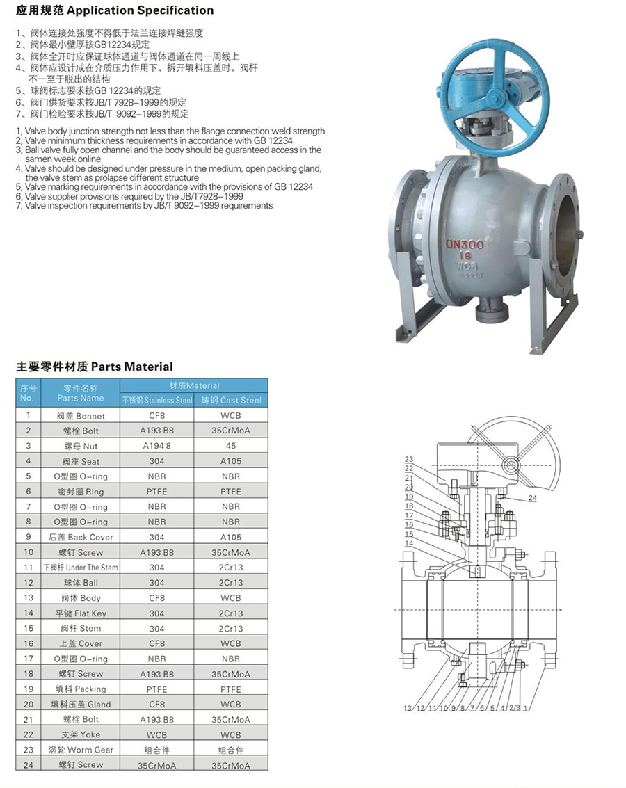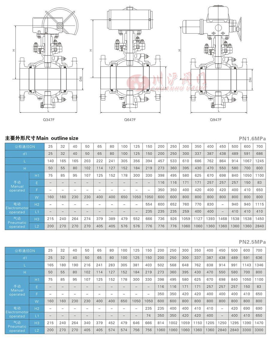CHQ947F電動固定式球閥是由固定式球閥和電動執(zhí)行器組成,多用于大于DN250口徑場合使用,比浮動球閥更加適合大口徑、大流量、高壓力的場合來使用。電動執(zhí)行器可以選用AC220V或AC380V等電壓來驅(qū)動,控制方式有開關(guān)型和調(diào)節(jié)型2種形式。根據(jù)不同的使用介質(zhì)可選用PTFE耐溫≤150℃、合金鋼H耐溫≤350℃場合。