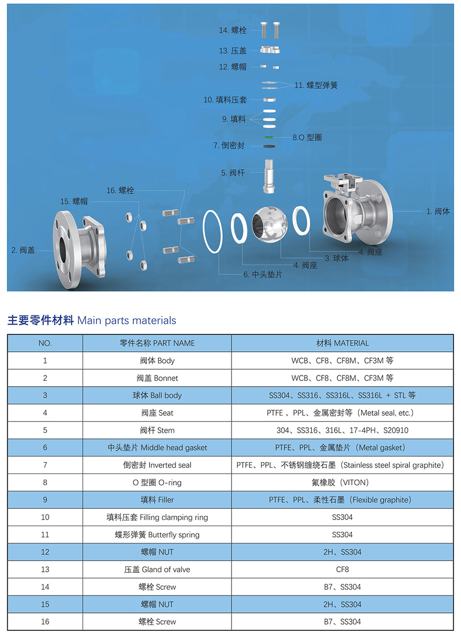 閥體材質(zhì):WCB、304不銹鋼系列、316不銹鋼系列