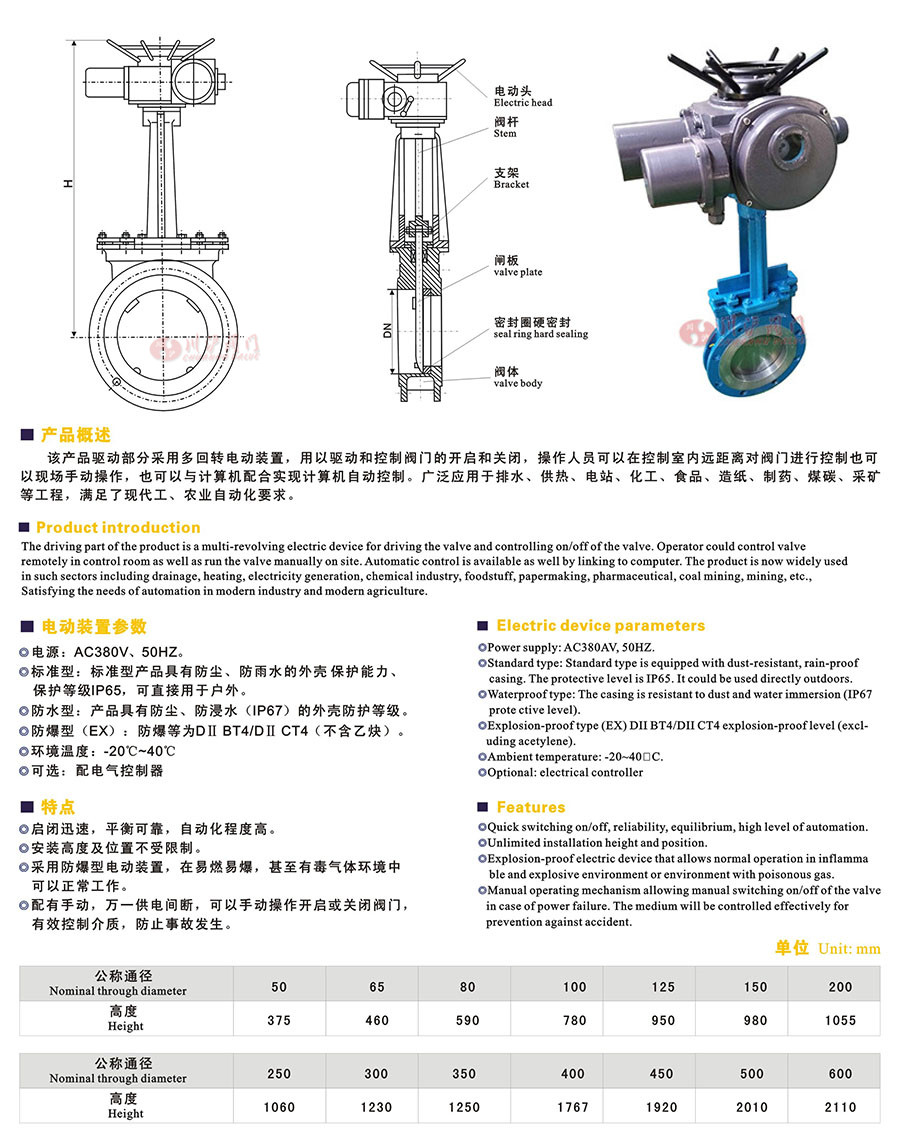 4、刀形漿閘閥可以配置手輪、手動拉鏈、正齒輪傳動、傘齒輪傳動、氣動、電動和電液動。