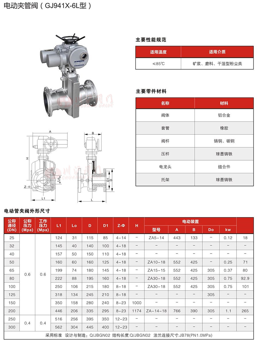 電動管夾閥是一種具有獨特結(jié)構(gòu)形式的新型閥門,因其卓越的耐磨防腐性能而倍受青睞,適應于低壓管道的顆粒漿體或化學介質(zhì)的輸送控制系統(tǒng)。電動管夾閥開啟方便靈活,密封性能好,杜絕了跑冒滴漏等現(xiàn)象的發(fā)生,膠管可定期更換,而閥體能長期使用,節(jié)省費用。膠管閥可以替代閘閥、截止閥和調(diào)節(jié)閥,提高使用壽命5-10倍。GJ941X-6L電動膠管閥由多回轉(zhuǎn)電動執(zhí)行機構(gòu)(DZW系列)與管夾閥組成,安裝簡易方便,耐磨、耐腐蝕。