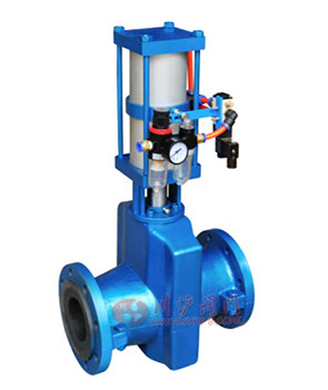 氣動管夾閥由上下鑄鐵、鑄鋼閥體、橡膠管套、大小閥桿、閘板、上下導柱、氣動裝置等零件組成,也可根據(jù)需要選擇驅(qū)動裝置。氣動管夾閥廣泛應用于化工工業(yè)、石油工業(yè)、電力部門、冶金工業(yè)、污水處理等方面。