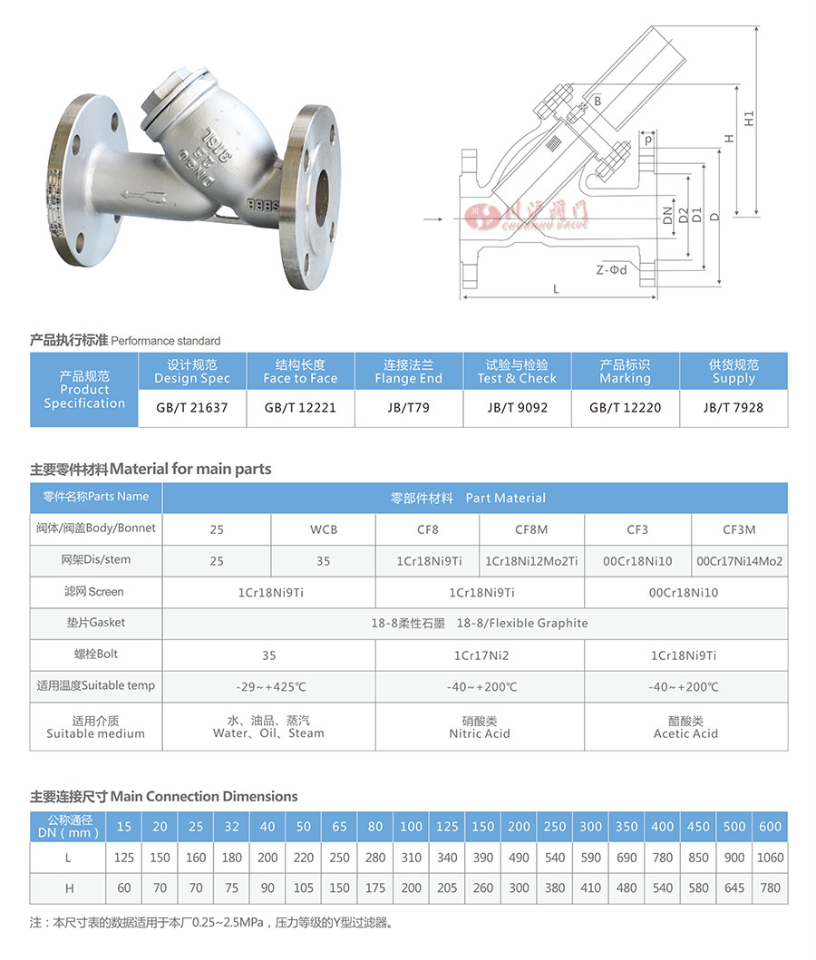 GL41W/GL41H型Y型過濾器由殼體、排污蓋、濾網等組成,是輸送介質的管道系統所不可缺少的一種裝置,其作用是清除介質中的機械雜質,以保護設備管道上的配件免受磨損和堵塞。內部件全部采用不銹鋼,堅固耐用。該過濾器體積小、濾眼細、阻力小、效率高、安裝檢修方便、成本低、維修方便。