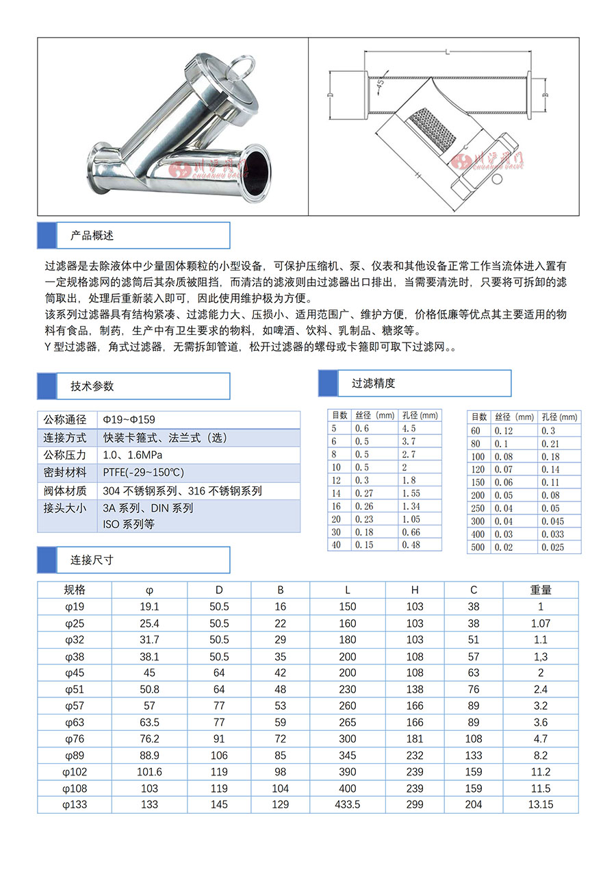 GL81F/GL81H衛生級過濾器主要用于保護泵、儀器儀表和其它設備能正常工作。由于其結構緊湊,過濾能力強,壓損小,維護方便等特點,廣泛應用于飲料,制藥,乳制品等領域。