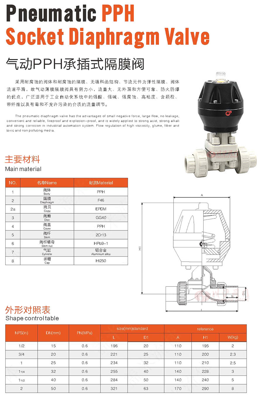 氣動(dòng)PPH雙由令隔膜閥采用耐腐蝕的閥體和耐腐蝕的隔膜、無(wú)填料函結(jié)構(gòu)、節(jié)流元件為彈性隔膜、閥體流道平滑,故氣動(dòng)薄膜隔膜調(diào)具有陰力小,流量大、無(wú)外漏和方便可靠、防火防爆的優(yōu)點(diǎn),廣泛適用于工業(yè)自動(dòng)化系統(tǒng)中的強(qiáng)酸、強(qiáng)堿、強(qiáng)腐蝕、高粘度、含顆粒、帶纖維以及有番和不充許污染的介質(zhì)的流量調(diào)節(jié)。