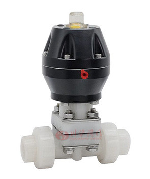 氣動PVDF雙由令隔膜閥采用耐腐蝕的閥體和耐腐蝕的隔膜、無填料函結構、節流元件為彈性隔膜、閥體流道平滑,故氣動薄膜隔膜調具有陰力小,流量大、無外漏和方便可靠、防火防爆的優點,廣泛適用于工業自動化系統中的強酸、強堿、強腐蝕、高粘度、含顆粒、帶纖維以及有番和不充許污染的介質的流量調節。