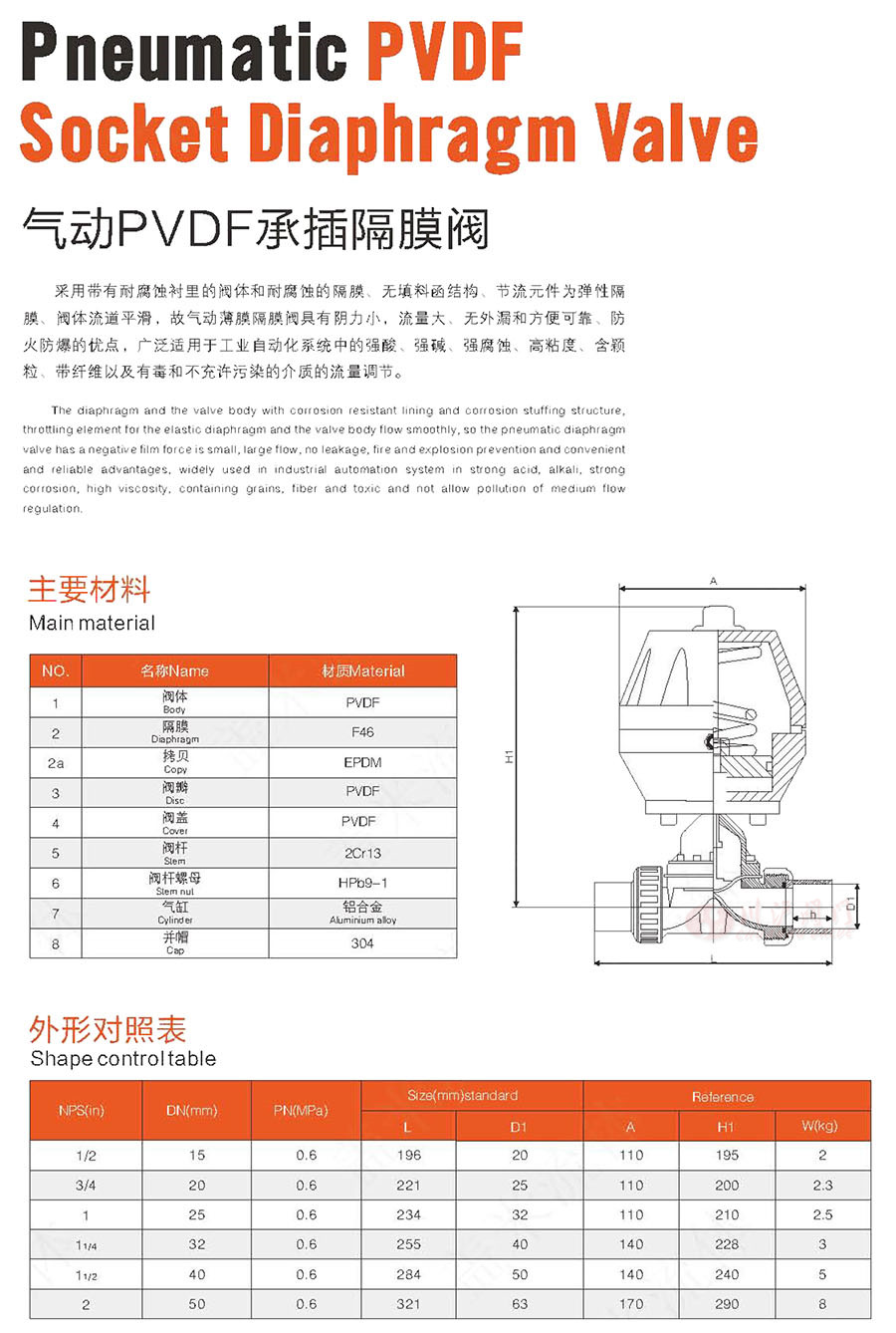 閥體材質:PVDF