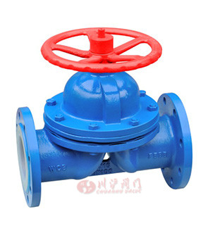 手動(dòng)襯氟隔膜閥是一種特殊形式的、具有截?cái)喙δ艿拈y門,其啟閉件由鋼質(zhì)閥瓣與軟質(zhì)材料(橡膠和氟塑料復(fù)合)制成的隔膜組成,并將閥體內(nèi)腔與閥蓋內(nèi)腔隔開,以達(dá)到截?cái)喙軆?nèi)介質(zhì)之目的。閥門可用于控制水、蒸汽、油品、氣體、泥漿、各種腐蝕性介質(zhì)、 液態(tài)金屬和放射性流體等流體的流動(dòng)。