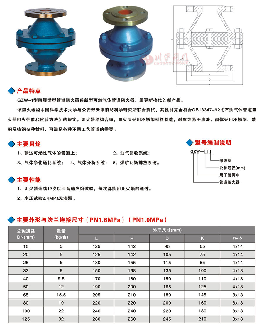 GZW管道阻火器系新型可燃氣體管道阻火器,屬更新換代的新產品。