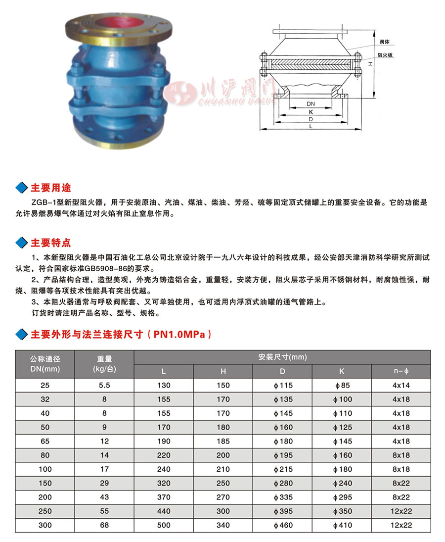 ZGB波紋管儲罐阻火器系用于安裝原油、汽油、煤油、柴油、芳烴、硫等固定頂式儲罐上的重要安全設備。它的功能是允許易燃易爆氣體通過對火焰有阻止窒息作用。