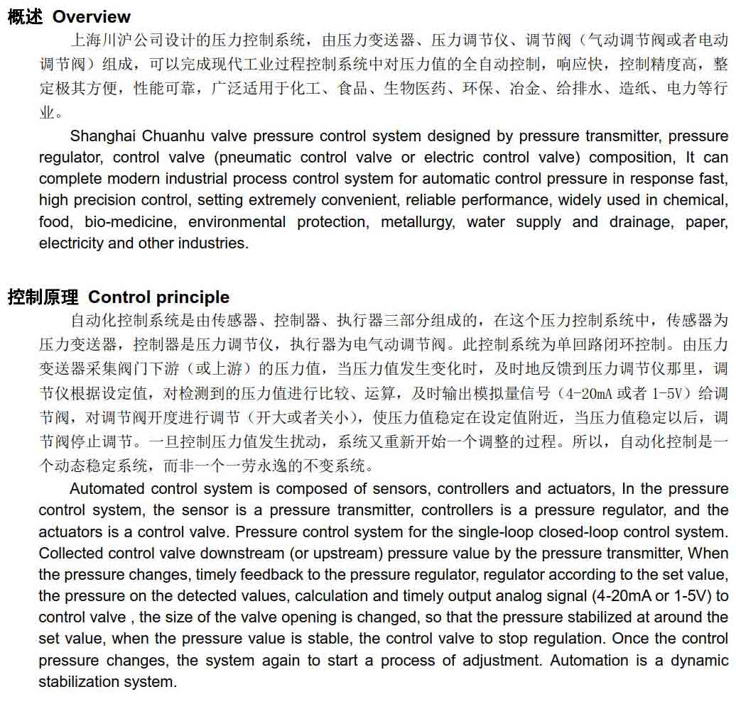 100P氣控壓力控制系統(tǒng)包含氣動(dòng)調(diào)節(jié)閥、控制箱和壓力變送器。可以完成現(xiàn)代工業(yè)過(guò)程中對(duì)管道壓力的全自動(dòng)控制。具有安裝方便、響應(yīng)快、控制精度高、整定方便、性能可靠等特點(diǎn)。廣泛適用于化工、食品、生物醫(yī)藥、環(huán)保、冶金、給排水、造紙、電力等行業(yè)。