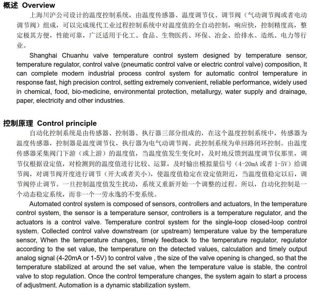 200E電控溫度控制系統包含電動調節閥、控制箱和溫度傳感器。可以完成現代工業過程中對管道溫度的全自動控制。具有安裝方便、響應快、控制精度高、整定方便、性能可靠等特點。廣泛適用于化工、食品、生物醫藥、環保、冶金、給排水、造紙、電力等行業。