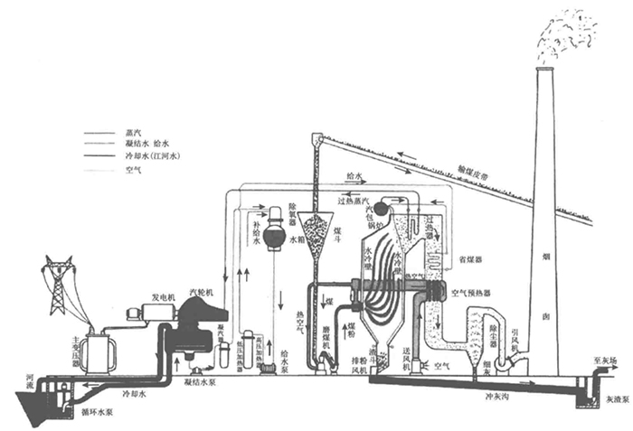 發電站生產過程和主要設備示意圖