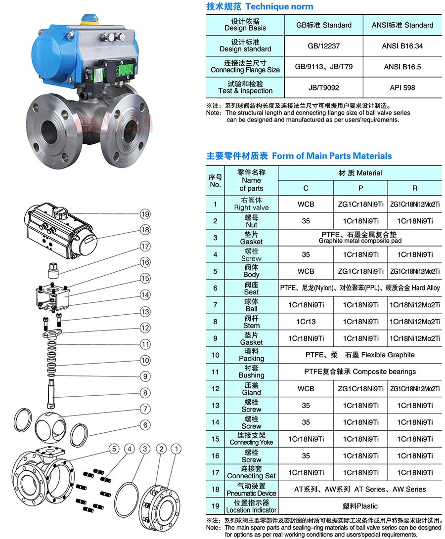 CHQ645F氣動(dòng)三通球閥 / Pneumatic three-way ball valve