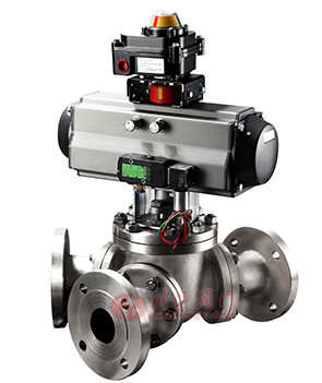 氣動Y型三通球閥,三通Y型球閥有相互成120°、135°二種閥體結構形式,Y型三通球閥流道平坦、流體阻力小,流通能力強。切換時介質無滯留,不會造成二次污染。其中和氣動執行機構組合后,能實現快速開閉(配電磁閥和限位開關)或調節流量大小(配閥門定位器)。