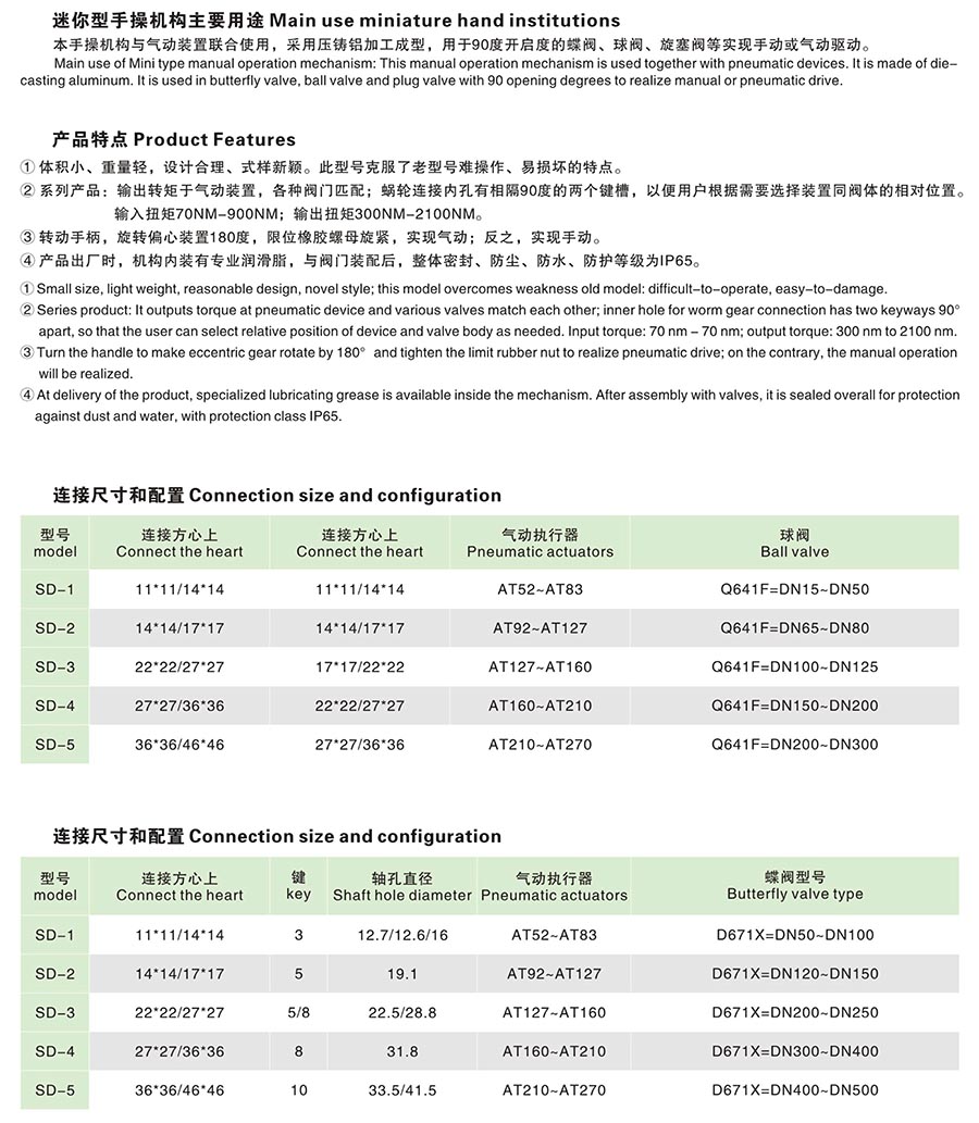 SZD型手輪機構與氣動裝置聯合使用,采用壓鑄鋁加工成型,用于90度開啟度的蝶閥、球閥、旋塞閥等實現手動或氣動驅動。