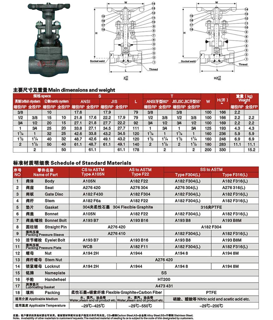 Z11H/Z61H鍛鋼內螺紋閘閥 / Forged steel internal thread gate valve