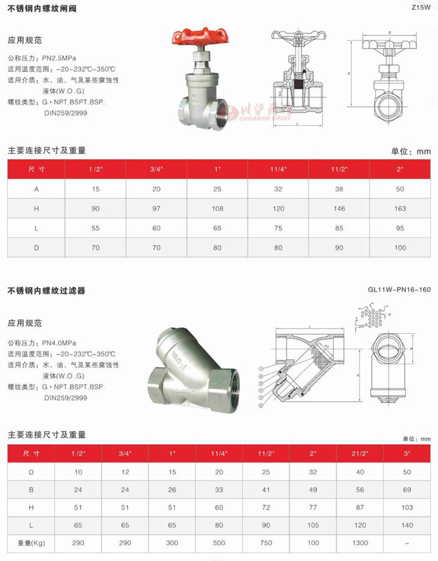 Z15W內螺紋手動閘閥 / Internal thread manual gate valve