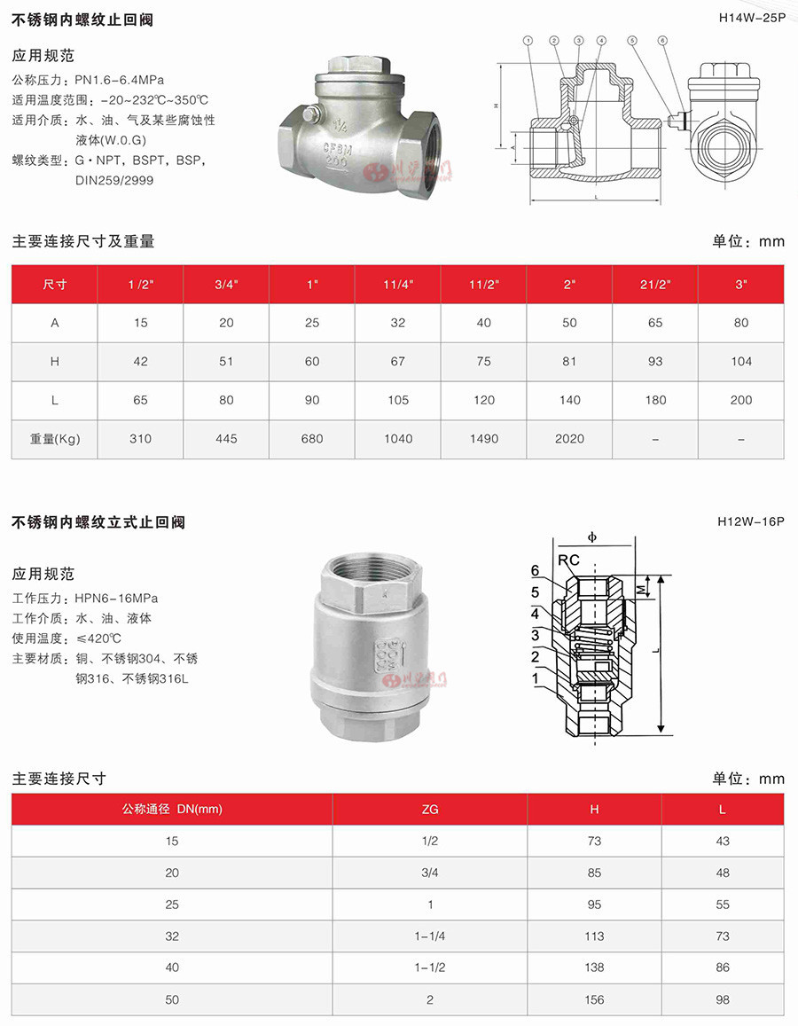 H14W/H12W內螺紋止回閥 / Internal thread check valve