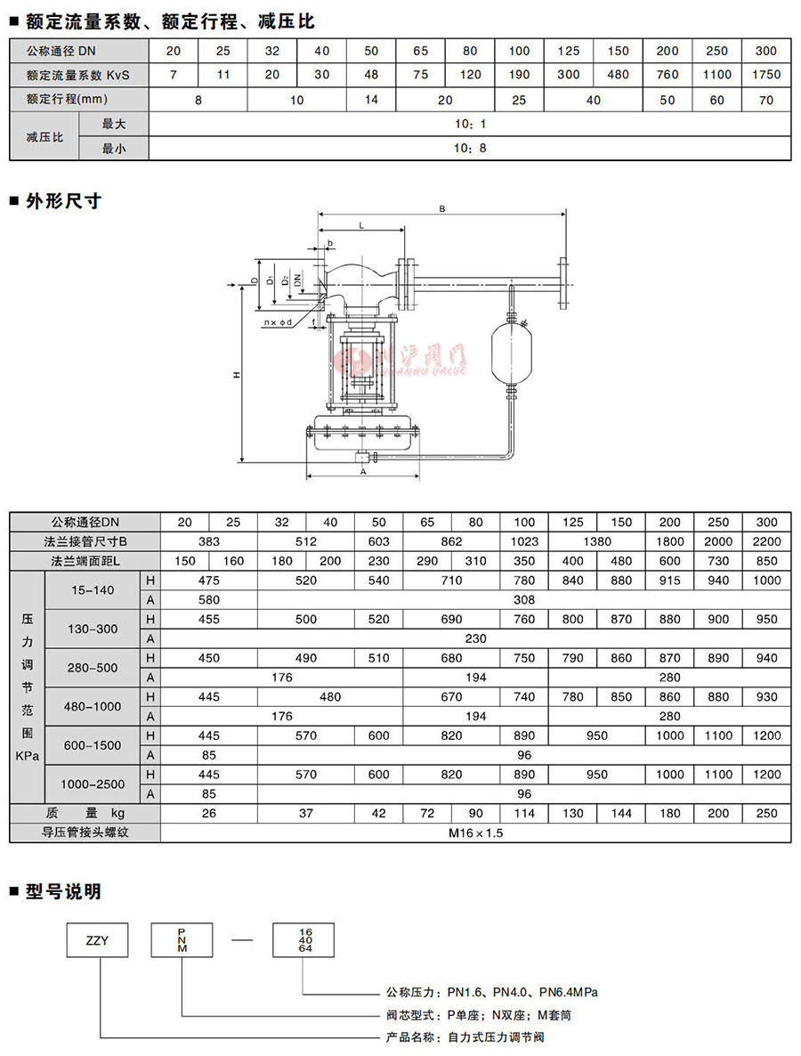 ZZYP/N/M自力式壓力調節閥,由控制閥門、執行器和一個設定壓力的彈簧組成。適用于非腐蝕性的液體、氣體和蒸汽,在系統管道中的閥前(當閥前壓力升高時,控制閥開啟)或閥后(當閥后壓力升高時,控制閥關閉)壓力控制。廣泛應用于石油、化工、電力、冶金、醫藥、食品、紡織、機械、暖通等